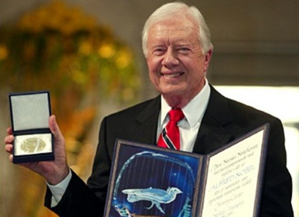 이 같은 활동이 세계 인권과 민주주의 증진에 기여한 공로를 인정받아 2002년 노벨평화상을 받았다.