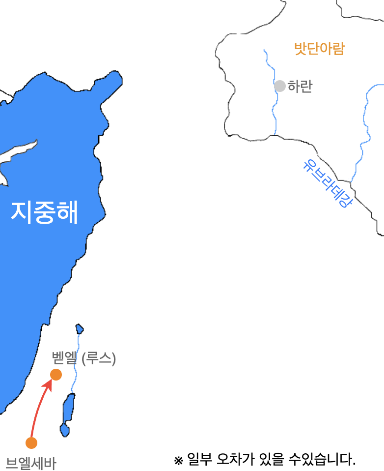 | 장소 | 비옥한 초생달 지역(에덴-하란) | 가나안(하란-가나안) | ||||||