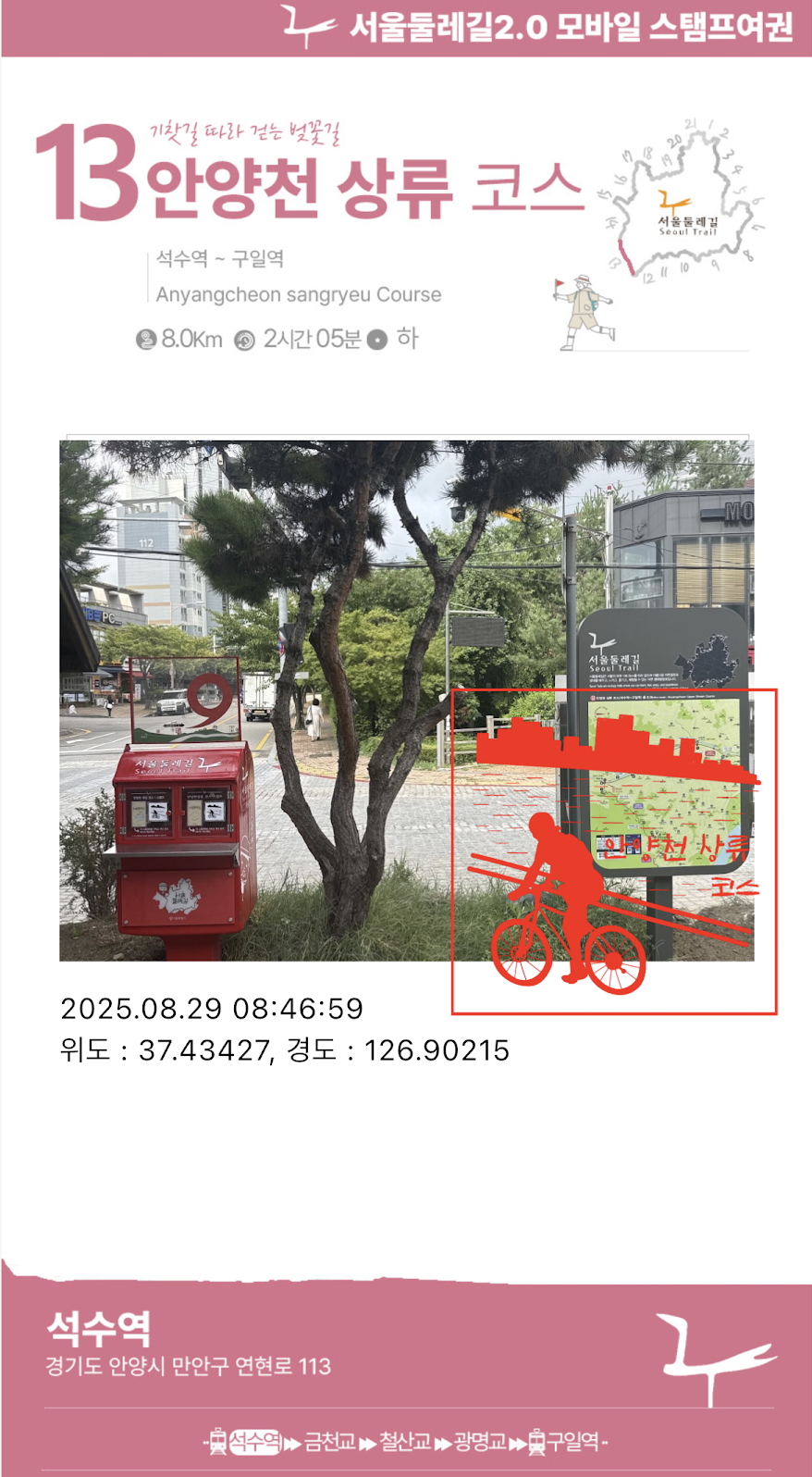 | [서울둘레길] 14코스 안양천 하류 코스 (0) | 2025.09.09 |