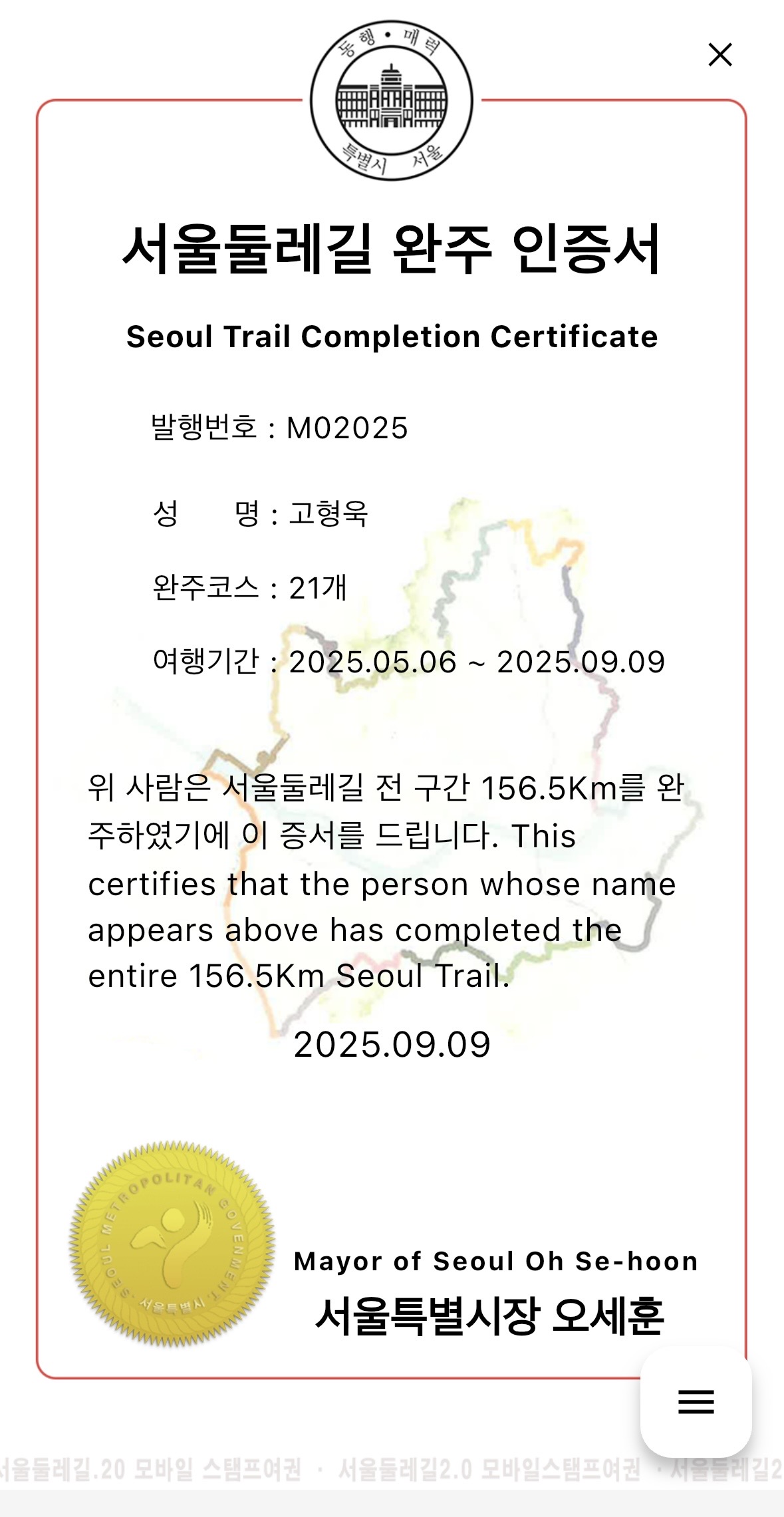 이제 서울 둘레길 완주 끝!