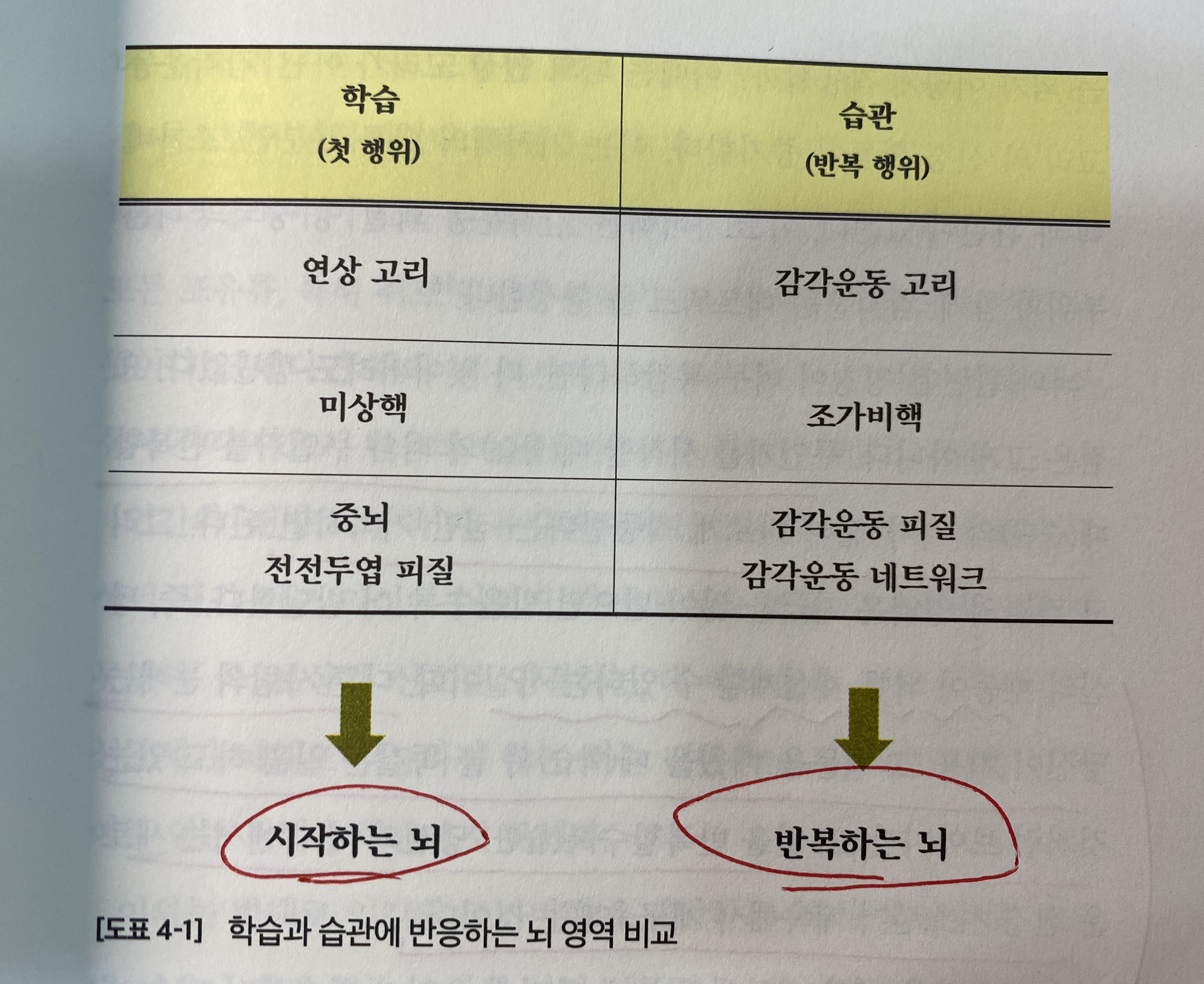 p.104 무언가를 시작할 때의 뇌와 무언가를 반복할 떄의 뇌가 전혀 다르게 작동한다는 점만 기억하면 된다. 그리고 각각의 영역은 자극을 많이 받으면 받을수록 더 발달한다 즉 당신의 행동이 뇌를 재설계할 수 있다는 사실이다. 다른 사람의 눈에는 당신이 처음 그 행동을 배웠을 때와 똑같은 일을 하고 있는 것처럼 보이지만, 그 일을 반복할수록 당신의 뇌 속에서는 새로운 신경 시스템이 계속해서 재구축되는 것이다. 바로 이러한 뇌의 재설계 덕분에 과거에 우리가 학습했던 것을 반복하면 그 다음에는 좀 더 수행하기가 쉬워진다. 뇌가 그게 맞춰 조금씩 변하기 때문이다.