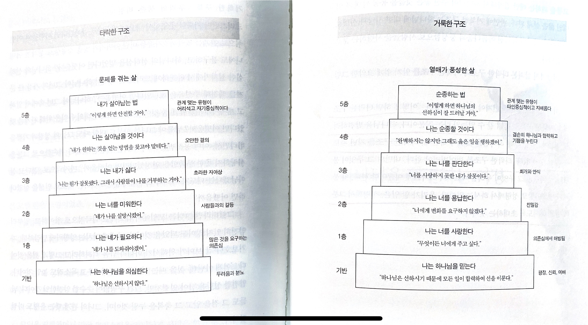 p.107 왜 우리는 하나님을 열심히 찾는데 발견하지 못하는 것일까? 정답은 우리의 타락한 구조에 있다. 여전히 이 구조를 끌어안고 하나님께 접근할 때, 하나님은 우리에게 귀 기울이시지 않는다.
