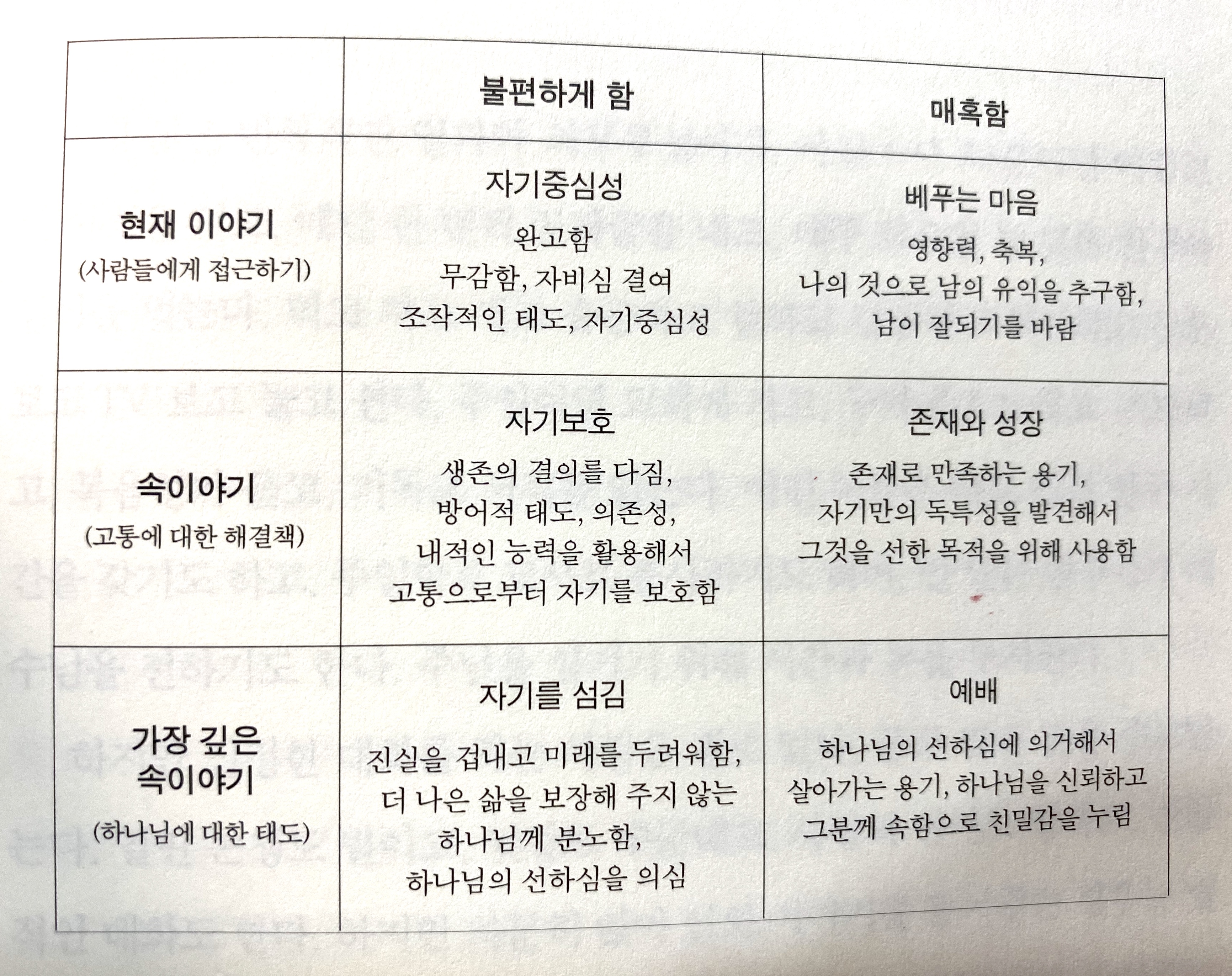 p.19 우리는 고통을 통해 하나님을 더욱 굳게 잡고 씨름하기보다는, 문제가 주는 고통을 제거하는데만 몰두한다. 하나님을 찾기보다는 자신을 괜찮은 사람으로 느끼는 것이 더 중요하다. 설상가상으로, 하나님을 발견하면 자신이 더 괜찮은 사람이 될 것이라고 전제한다.