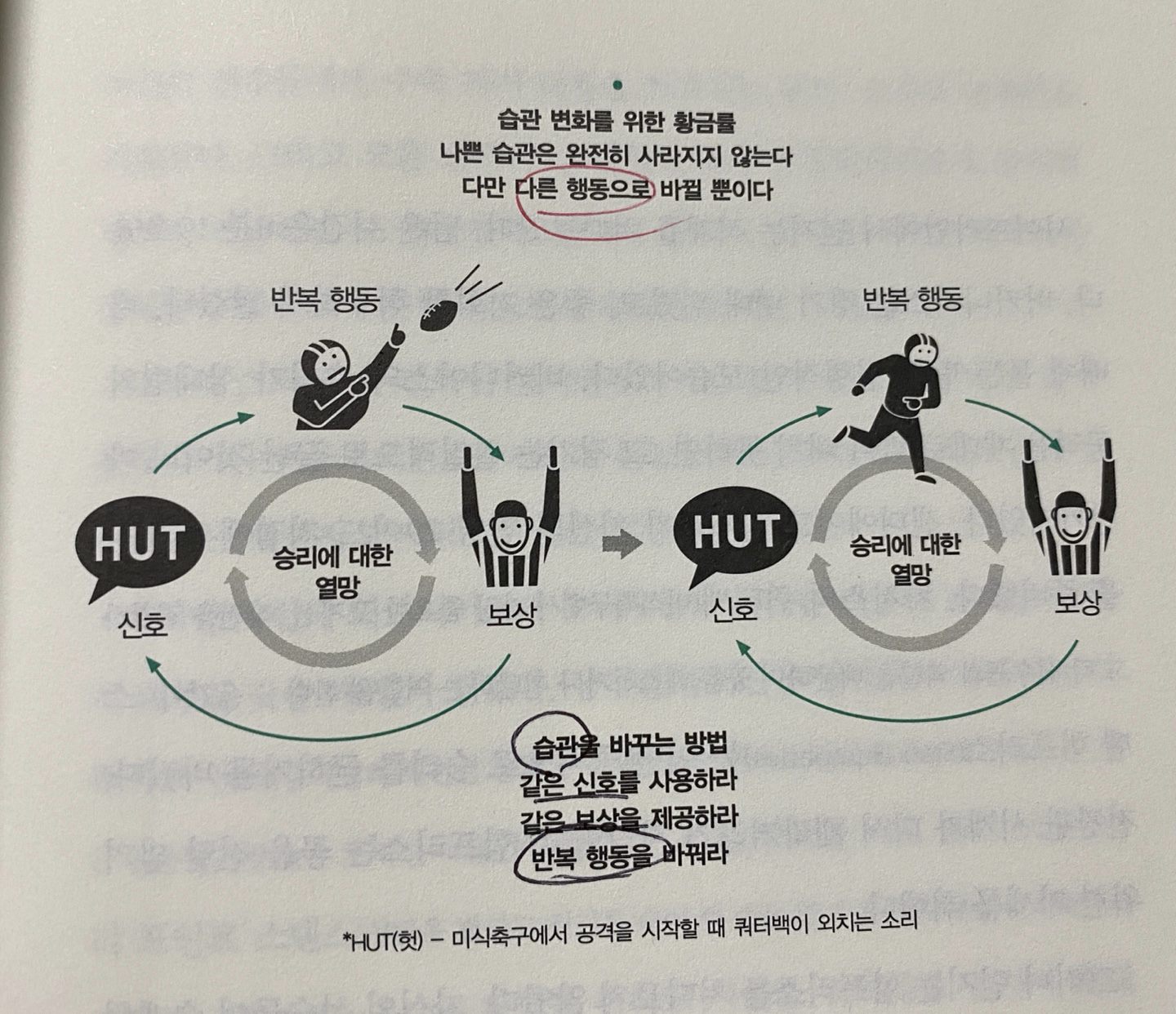 p.81 새로운 습관이 탄생하는 과정이다. 신호-반복행동-보상이 하나의 고리로 연결되고, 열망이 그 고리를 지속적으로 회전시키는 것이다.