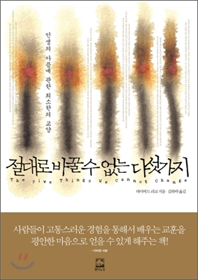 - 바꿀 수 없는 것을 받아들인다는 말은 바꿀 수 없다는 바로그 이유 때문에 받아들여야 한다는 말처럼 들립니다. 하지만 우리가 바꿀 수도, 좌우할 수도 없는 그것들이 우리에게 '필요한' 것임을 이해하게 되면, 현실을 받아들이는 것이 자신을 성장하게 하는 방법임을 알게 됩니다. 변화시킬 수 없는 것을 받아들이고, 좌우하려는 시도를 그만둘 때 비로소 마음의 평온이 생격납니다.