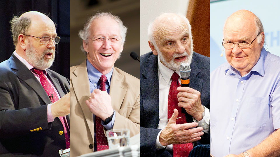<뉴스앤조이> 코로나19 가상 대담에 참석한 패널들. 왼쪽부터 톰 라이트, 존 파이퍼, 월터 브루그만, 존 레녹스. 사진 출처 플리커