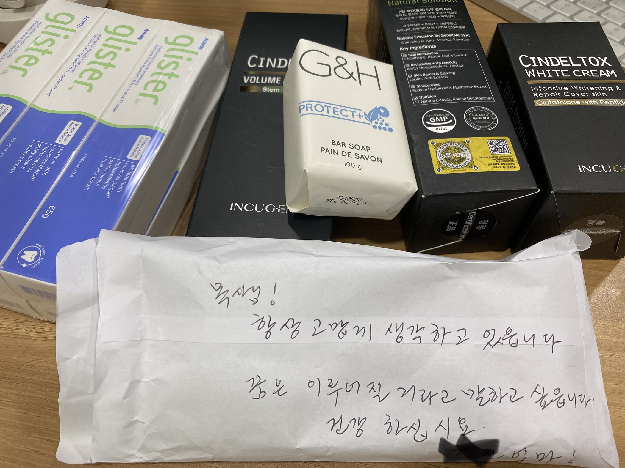 그 안에 선물들과 봉투...