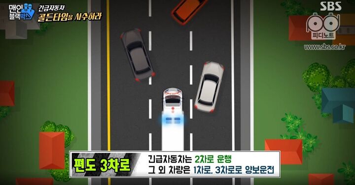 긴급자동차가 2차로로 운행할 수 있도록 그 외의 차량들은