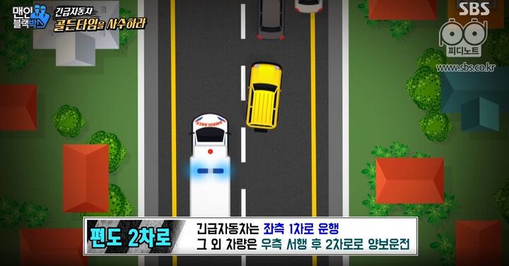 긴급자동차가 좌측 1차로로 운행할 수 있도록