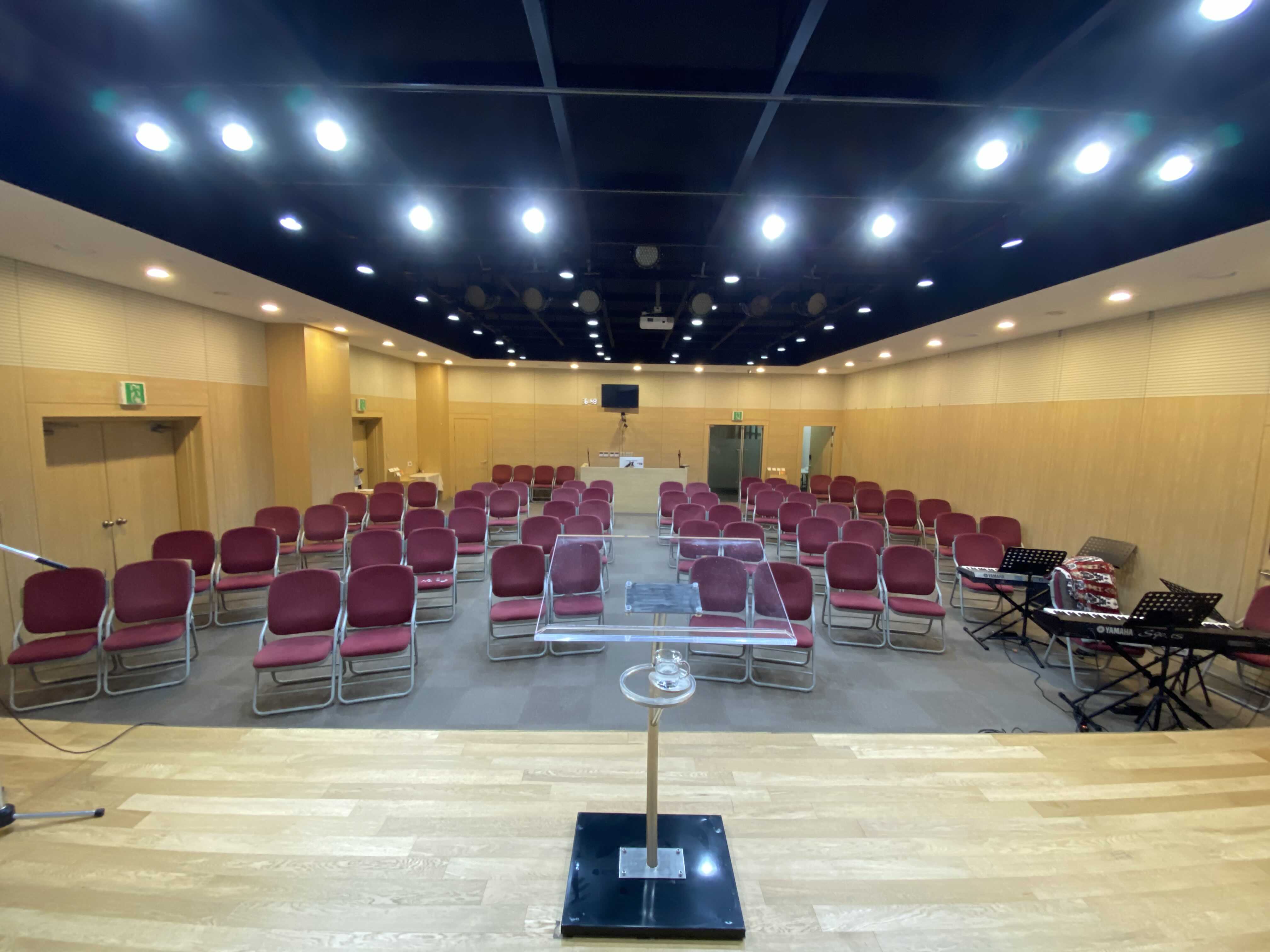 교육관을 예배당으로 정돈하는 작업을 하고 있다.