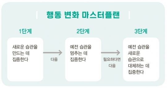 p.7 좋은 습관을 만들고 행동을 바꾸는 일이 성공하려면 다음 세 가지를 지켜야 한다.