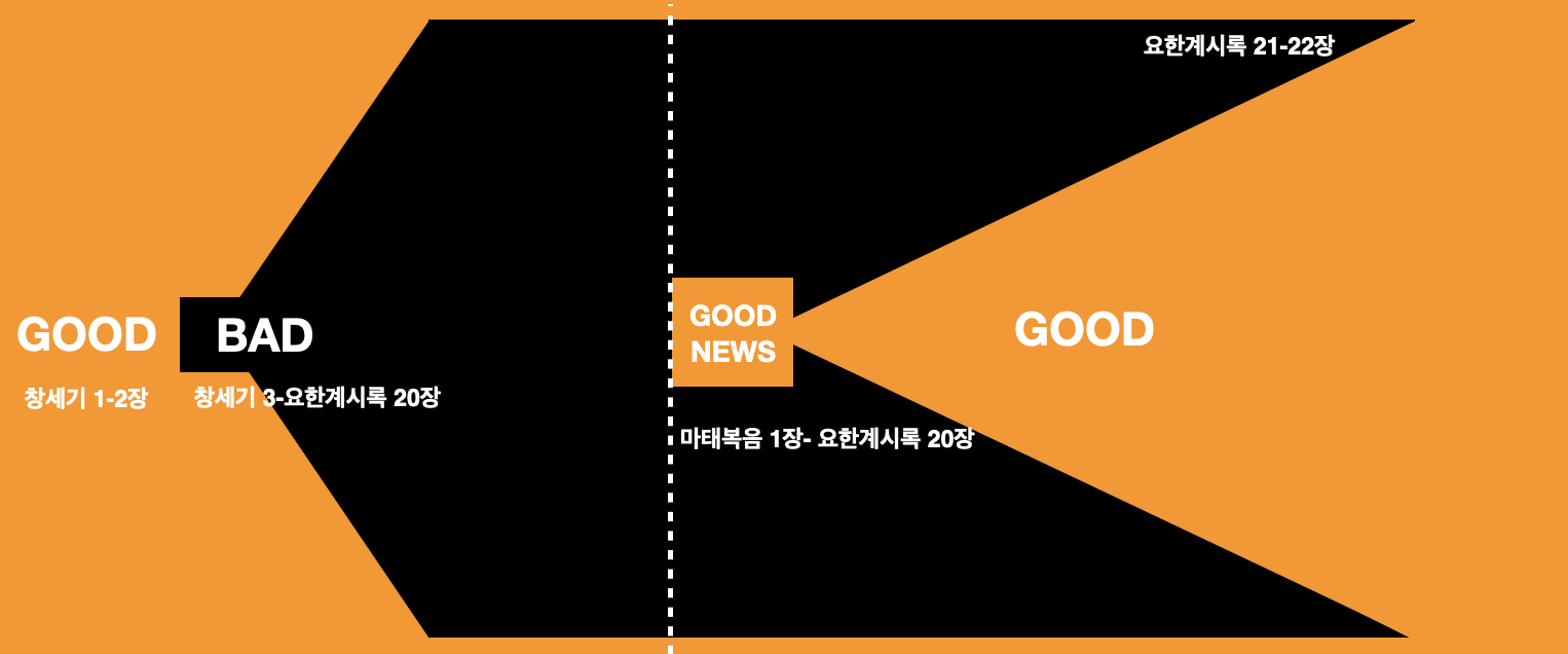 성경의 전체 이야기를 이해하는 두번째 방법은 '구조를 가지고 바라보는 것'이다. '하나님 나라'라는 성경의 이야기는 4가지 구조로 되어 있는데 GOOD - BAD - GOOD NEWS - GOOD이다.