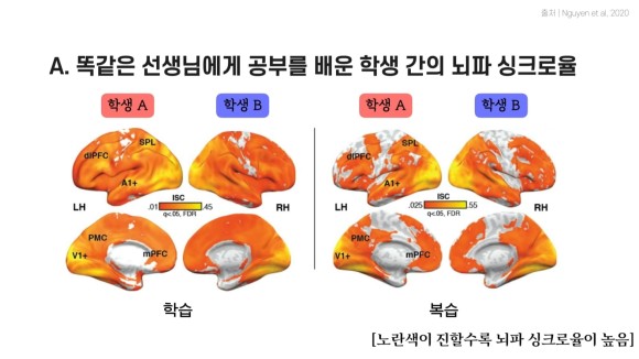 뇌과학자인 장동선 박사가 '세바시 강연'에서 미국의 심리학자 로버트 로젠탈의 연구를 인용하면서 학생들이 똑같은 선생님에게 수업을 들을 때, 학생 간의 뇌파 싱크로율이 거의 일치한다고 연구결과를 이야기했다. 더군다나 수업을 듣고 있는 동안 가르치는 선생님과 배우는 학생과도 뇌파 싱트로율이 거의 일치한다는 것이다. 그러니 가정은 부모와 자녀가 같은 공간에서, 같은 음식을 먹으며 함께 살아가기에 자녀에 대한 부모의 영향력이 얼마나 클지는 우리의 예상을 뛰어넘을 것이다.