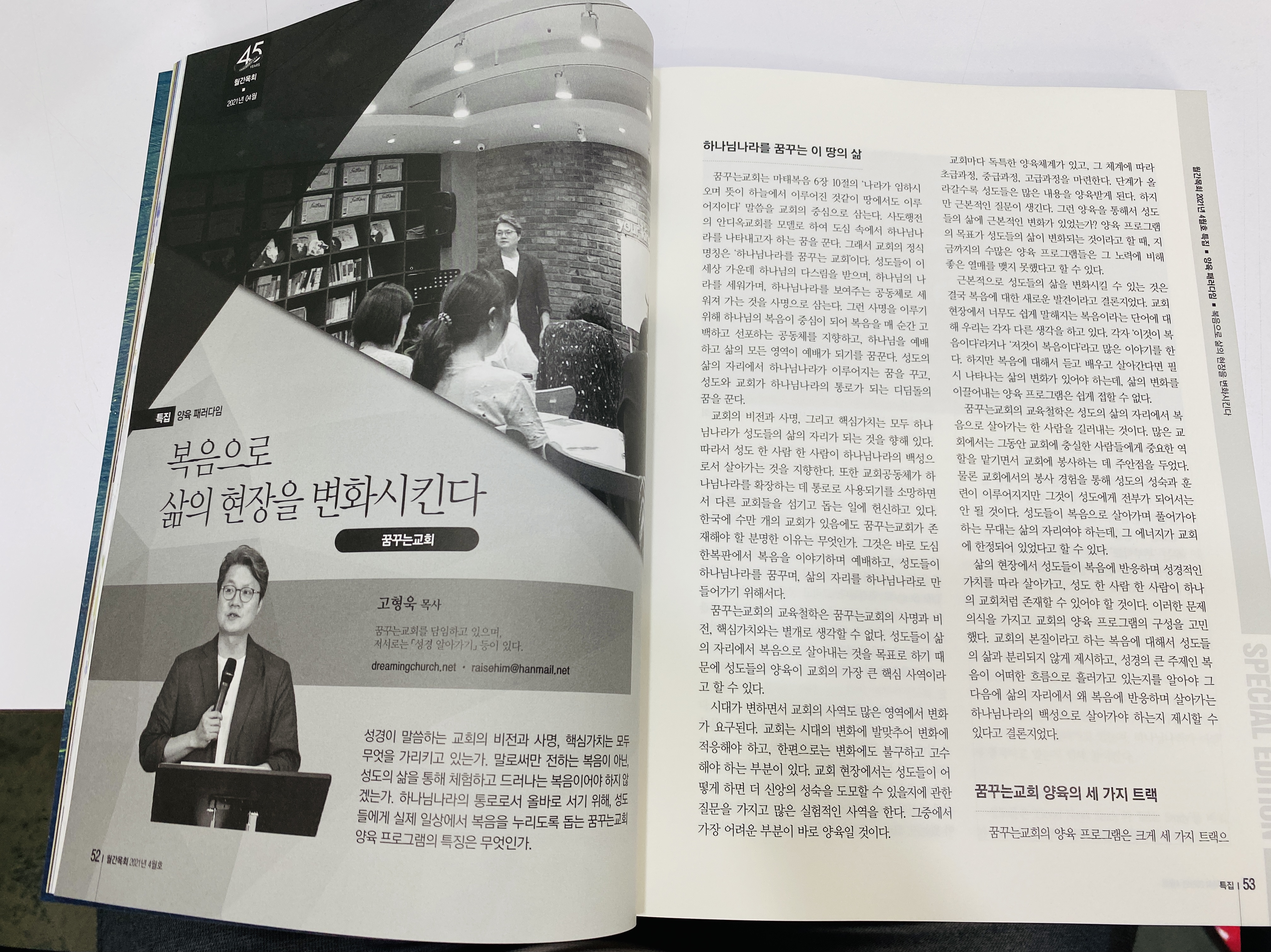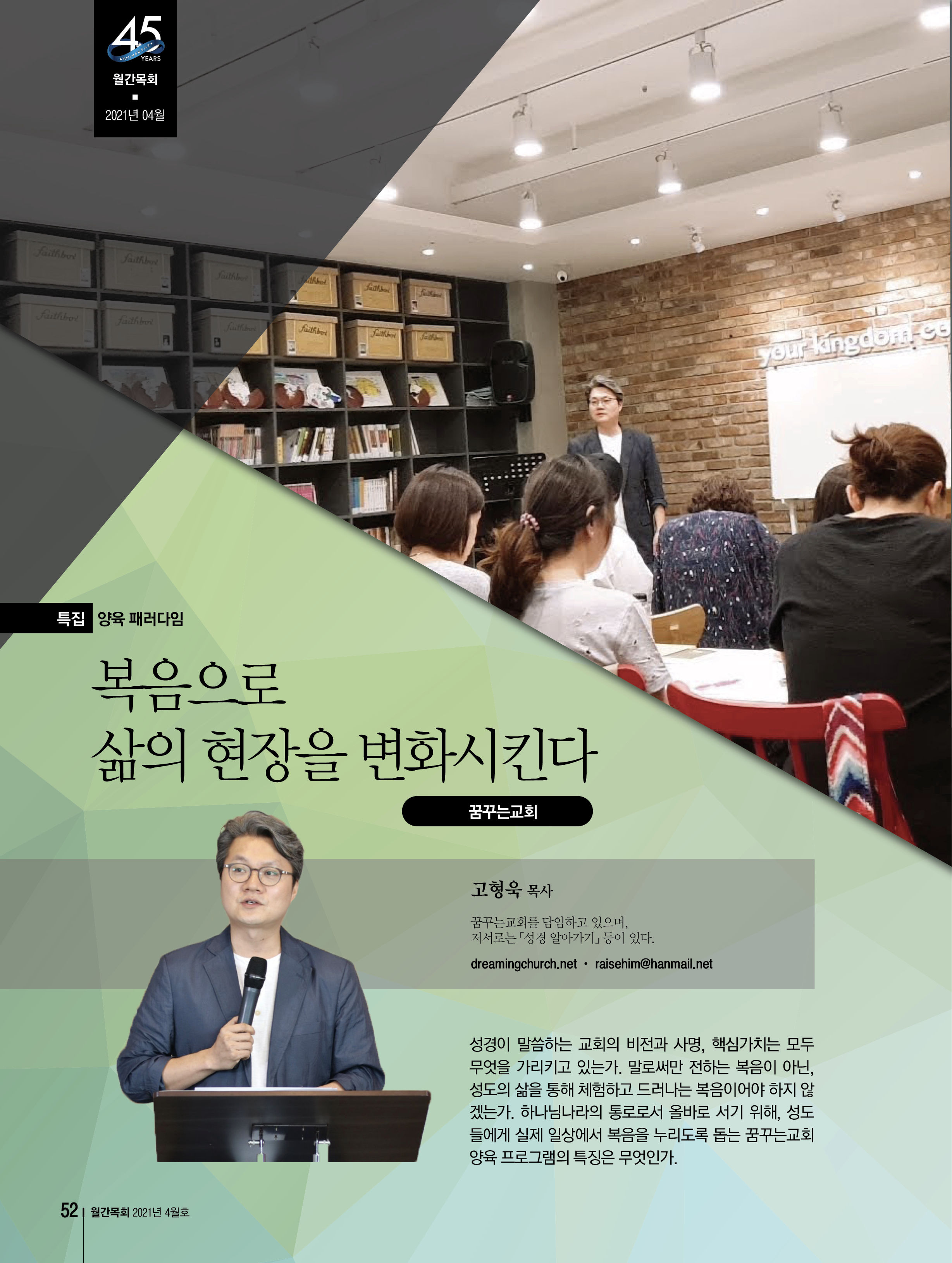 월간목회 4월호에 복음과 꿈꾸는교회에 대한 기사가 났다.