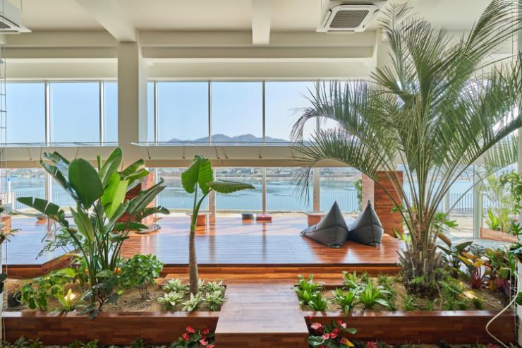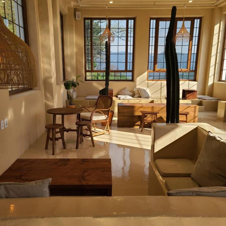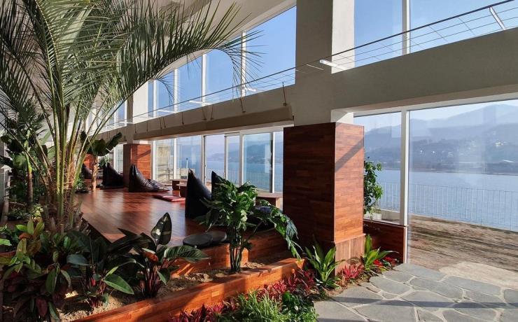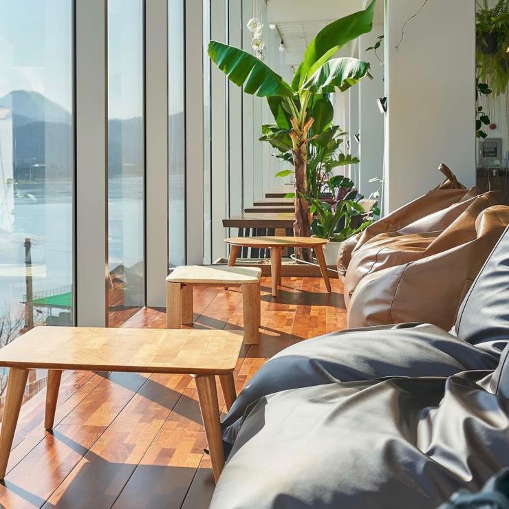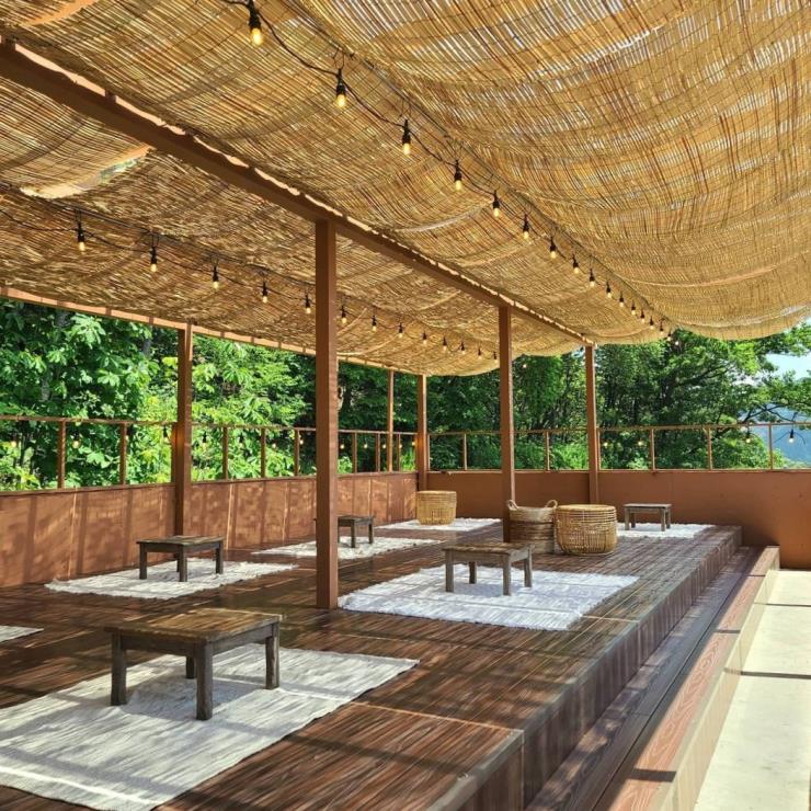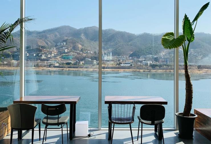 북한강 뷰 카페의 떠오르는 핫플레이스 라온숨. 올해 오픈한 신상 카페로, 녹음으로 가득 찬 공간에 앉아 아름다운 북한강을 한눈에 감상할 수 있는 뷰 맛집 카페라는 입소문을 타고 있다. 전체 건물은 5층 규모이지만, 현재 1층과 2층을 제외한 다른 층들은 아직 오픈하지 않은 상태. 평상에 놓인 빈백, 복층 구조의 테이블 등 다양한 좌석 형태를 만나볼 수 있고 탁 트인 높은 층고의 공간을 식물로 가득 채워 마치 식물원을 방불케 한다. 근처의 다른 카페들에 비해 커피나 디저트의 가격이 저렴한 편은 아니지만, 커피와 디저트의 맛, 북한강 뷰를 조합해 봤을 땐 합리적인 가격이라고 생각되는 곳이다.