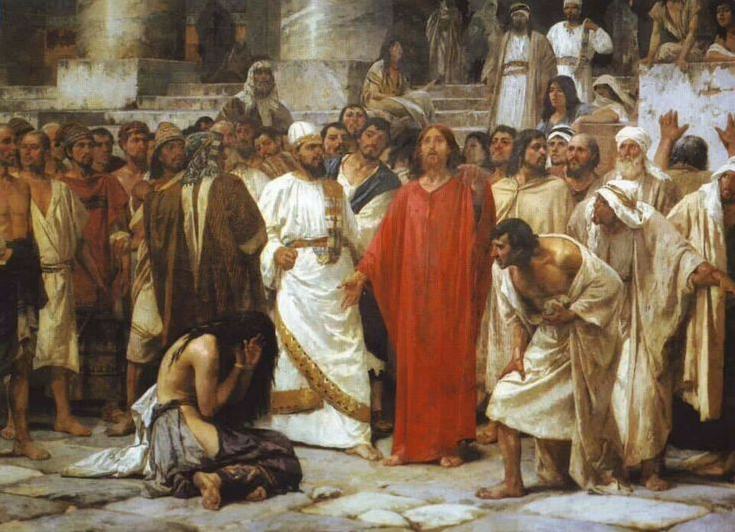 간음한 여인의 주변에는 아무도 없다.