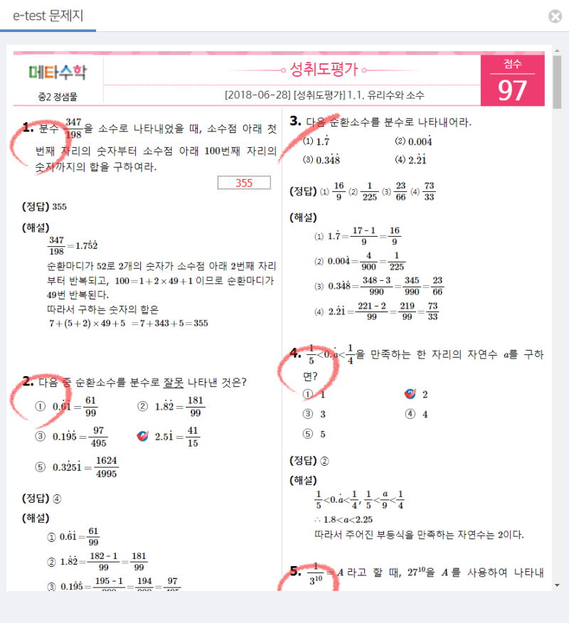 어떤 학생은 처음 보는 문제 두 문제를 틀려서