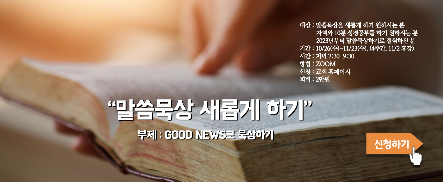GOOD NEWS를 중심으로 묵상하는 것을 다시 훈련하려고 한다.