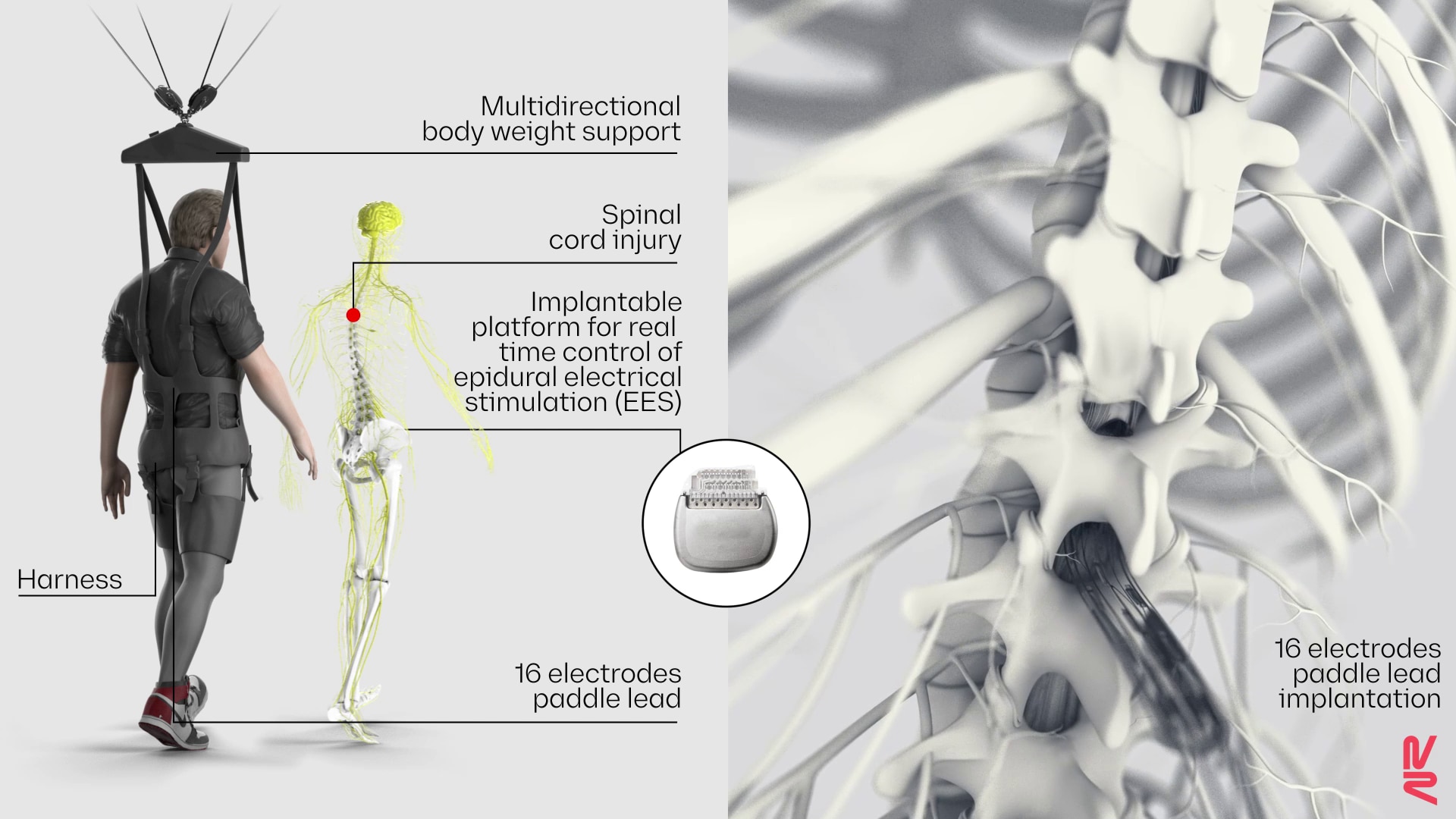 스위스 연구진은 2018년 처음으로 마비 환자의 척수에 전기자극을 줘 다시 걷게 하는 데 성공했다. 전기자극 시험은 대부분 척수 손상이 덜해 신경이 온전한 환자에게 시도했지만 지난 2월에는 처음으로 척수가 완전히 손상된 환자에 전극을 이식해 물에서 발차기까지 성공시켰다.