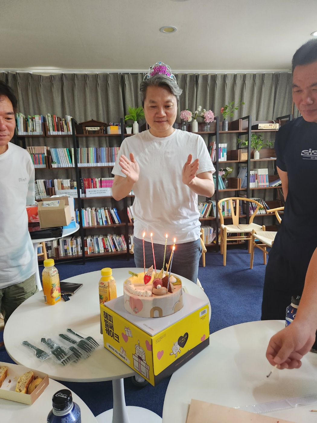 평생 써보지 않던 왕관을 생일이라고 쓰네요.