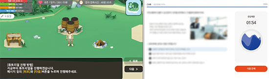 우선 메타인지를 측정하는 PSG 검사를 시작했다. 검사는 간단하다. 로그인 직후 튜토리얼을 마치면 게임이 시작된다. 게임 목표는 40분 동안 무인도에 갇힌 캐릭터를 생존시키는 것이다. 체온, 수분, 열량 등의 지표를 살피며 물, 고기를 섭취하고 수면을 취해야 한다. 생존에 필요한 도구들은 ‘미니게임’을 통해 얻어야 한다. 미니게임은 공간지각 능력, 논리 능력을 요구하는 문제들로 이뤄져 있다. 문제를 제대로 풀어야만 생존에 필요한 가죽, 고기, 물, 석재 등 아이템을 받을 수 있다.