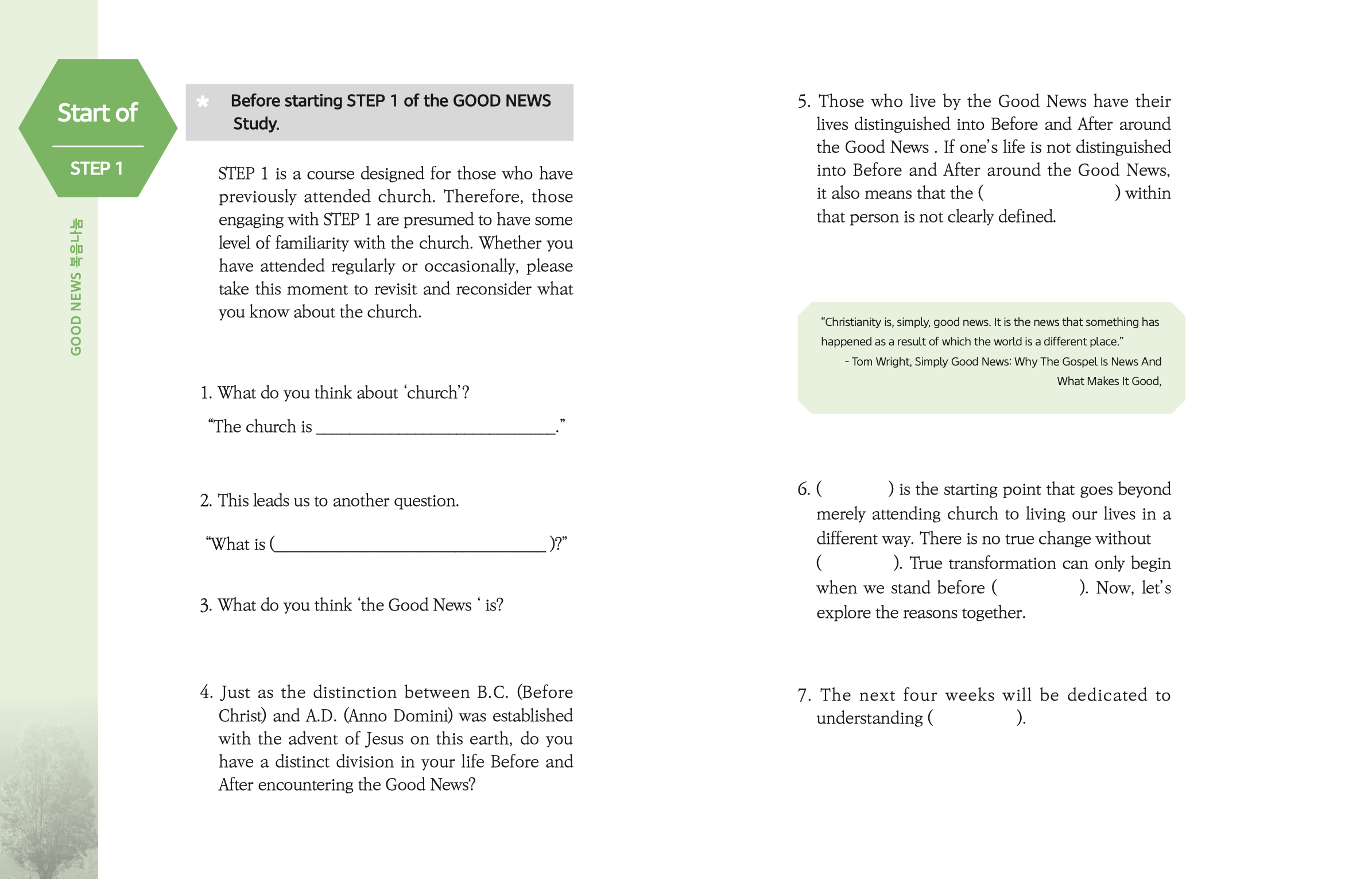 복음나눔 STEP1 영문판 초안이 나왔다.