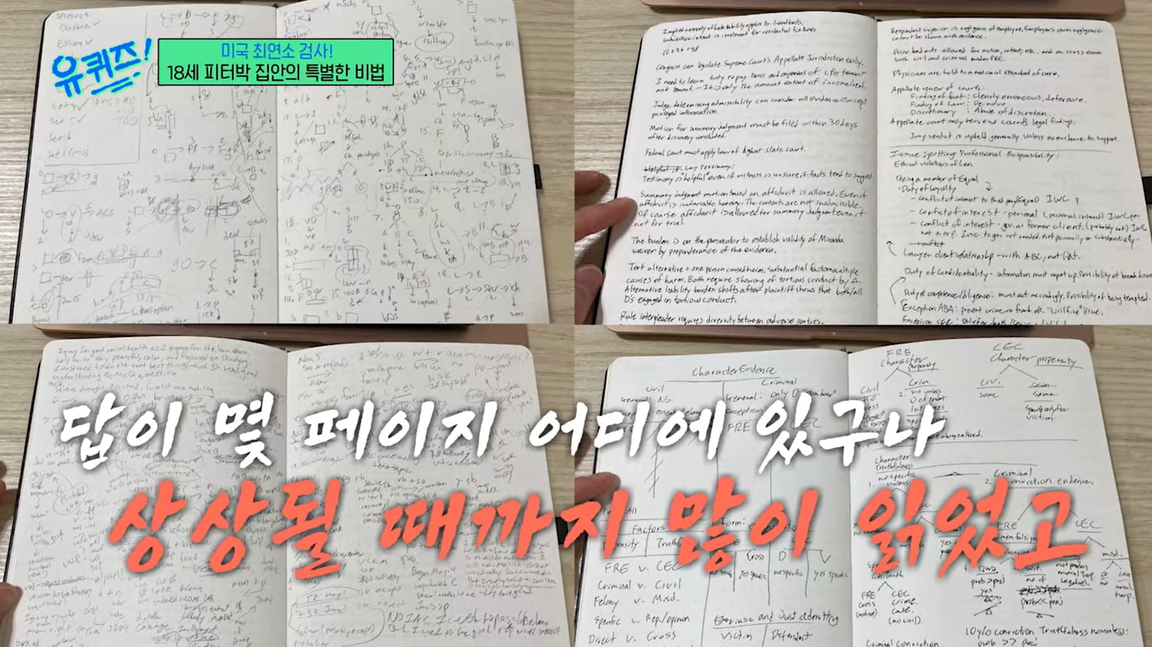 피터 박이 변호사 시험 공부했던 필기들. /tvN '유퀴즈 온 더 블럭'