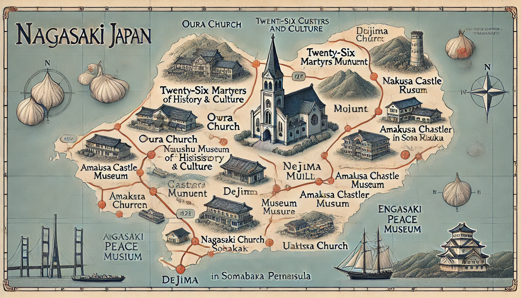 나가사키 순례 코스는 특히 박해 시대에 이 지역의 풍부한 기독교 역사와 일본 신앙의 심오한 유산에 초점을 맞춘 매우 의미 있는 여행이 될 수 있습니다. 다음은 이 지역의 기독교 유산과 관련된 주요 장소를 강조하는 나가사키 순례 추천 코스입니다.